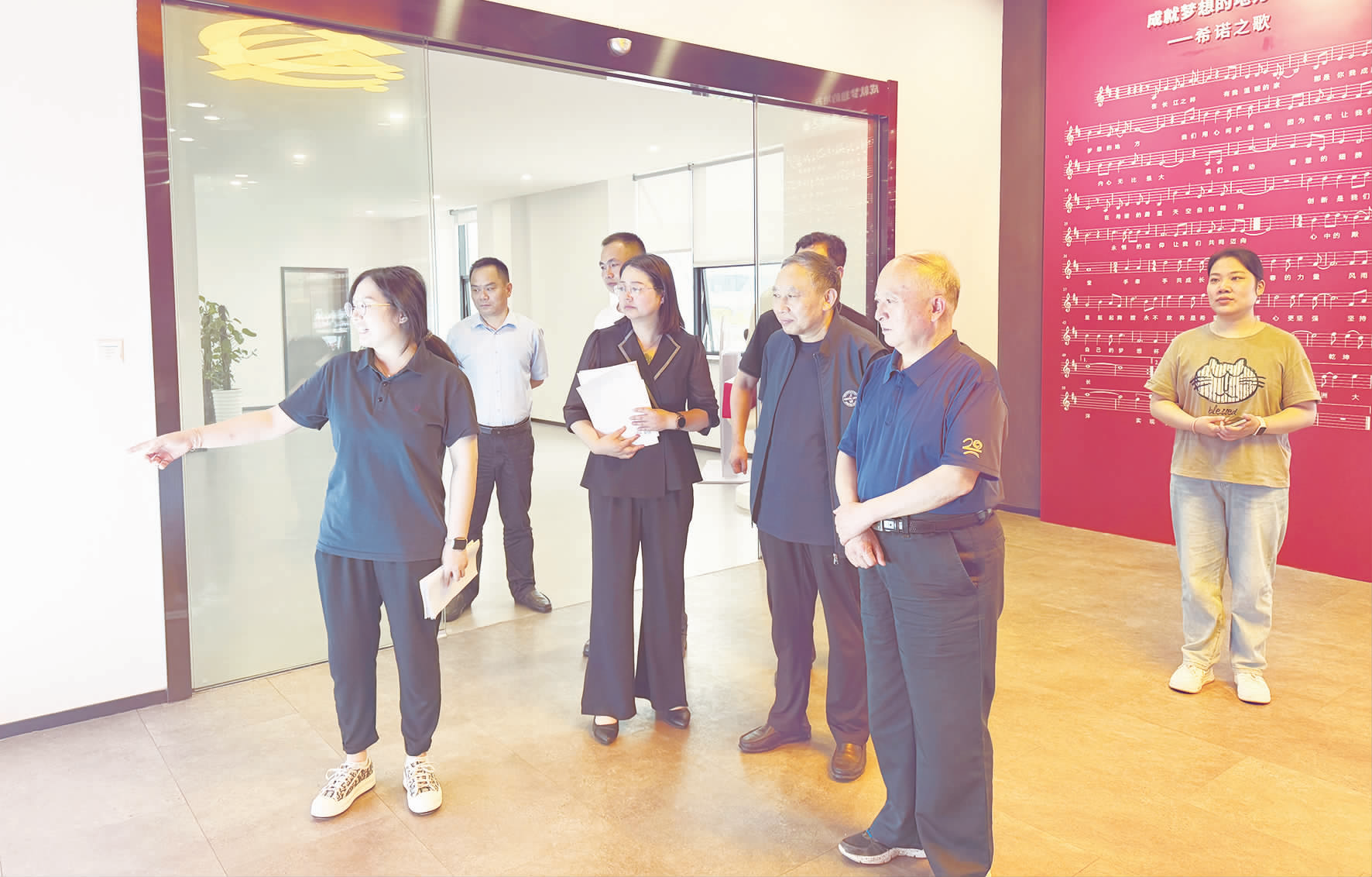近日,南通市海门区慈善总会会长陆一飞、副秘书长冯彪一行赴爱心企业希诺股份有限公司调研,零距离感受该公司浓厚的公益氛围与企业爱心热度。图为他们在希诺党建馆参观。
