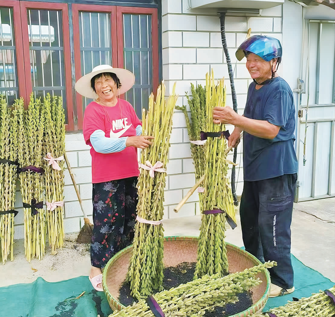 三厂街道秦家桥附近村民在门口晾晒芝麻秆