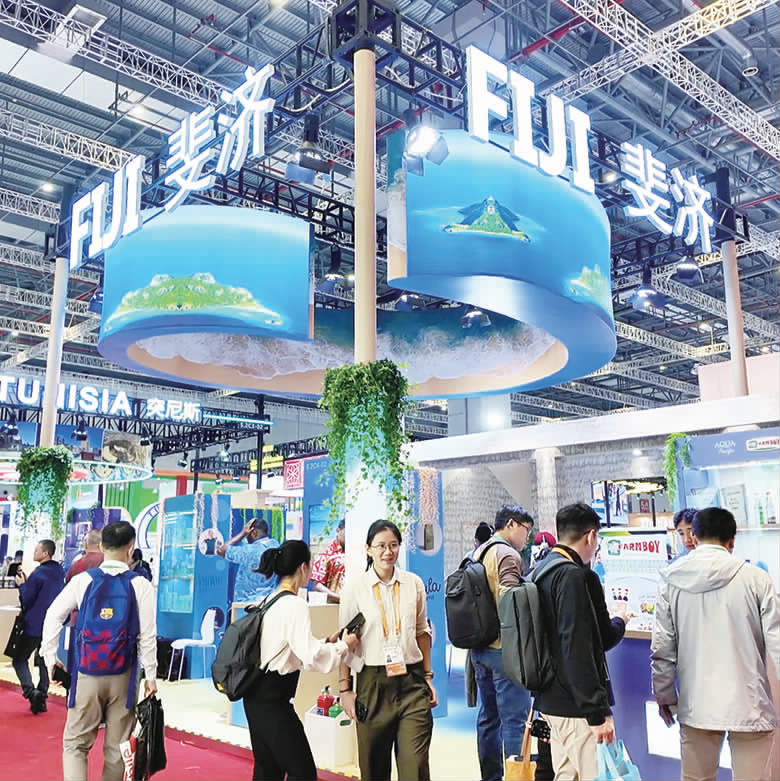 在这场国际盛会上,海门本土企业也主动发声、积极拓局。国家馆斐济展区内,VIAWAI天然自流矿泉水展台前人头攒动,这一漂洋过海的品牌与海门有着深厚渊源,其中国区总运营权由深耕海门多年的本土企业“斐原贸易”持有。这是斐原贸易第五次以中国区总运营身份携该品牌参展,在展台前,总经理周宏博忙碌地穿梭于中外客商之间,对接合作事宜、洽谈发展机遇。“进博会为品牌提供了面向全球的展示窗口和资源链接平台,我们希望借此机会将全球优质资源与海门本地市场深度融合,为本土经济发展添砖加瓦。”周宏博说。